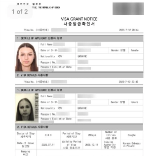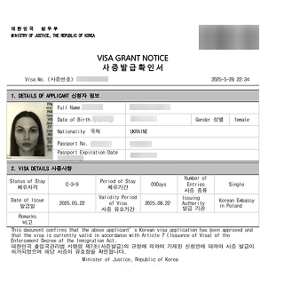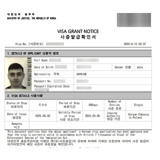 "Получена виза в Южную Корею на три месяца для гражданина Украины, который проживает и работает в Польше"