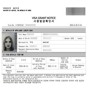 "Одобрена туристическая виза в Южную Корею на три месяца для гражданки Украины, которая проживает и работает в Польше."